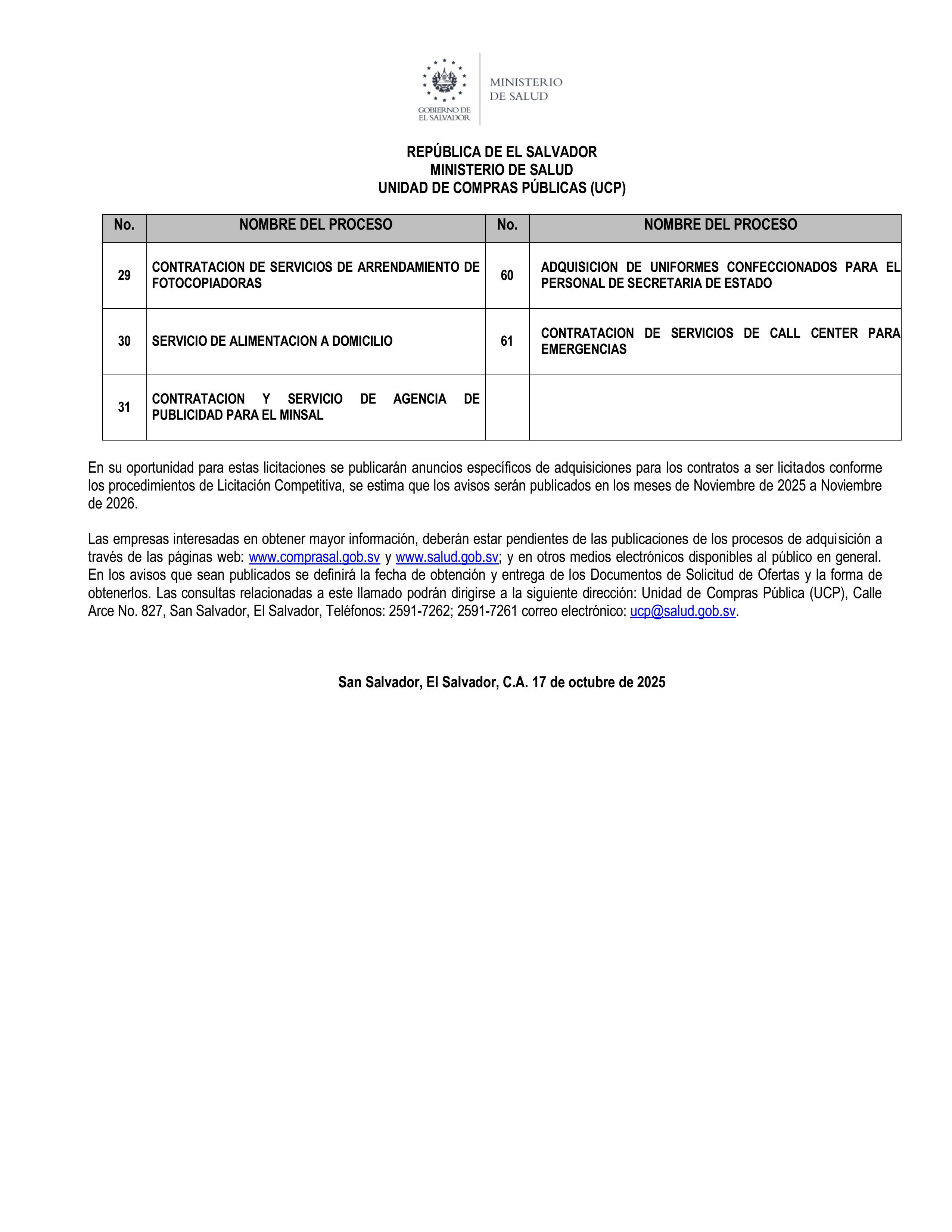AVISO DE CONTRATACIÓN FUTURA MINSAL (17/10/2025)